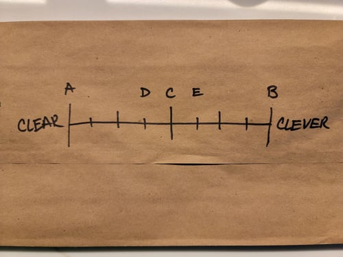 This math nerd turned that line into a line segment. Somehow that got me thinking about copywriting and the eternal debate around clear copy vs. clever copy.