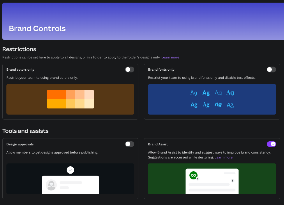 The four brand control options in Canva