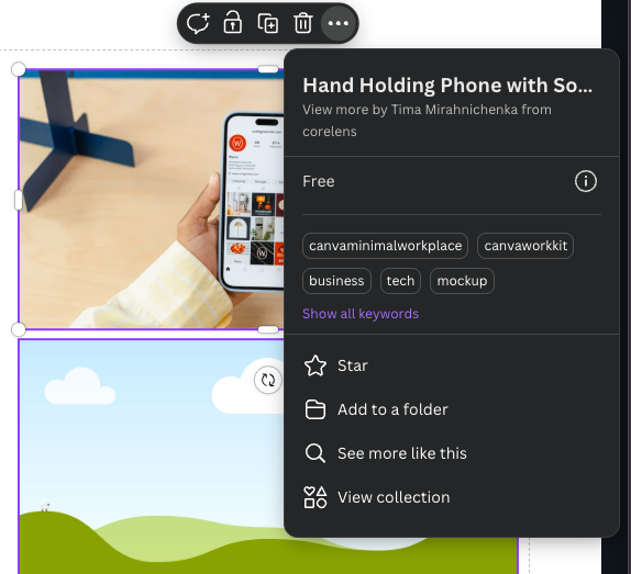 Ever need an element like a hand-drawn arrow but then you realize you need a second one but you can’t find one that really matches? If you right click on that graphic you have two important link: view more by and view collection. View more by will show you additional assets created by the designer that created the one you chose. View collection will show you other graphics that match the one you chose. No more digging around.