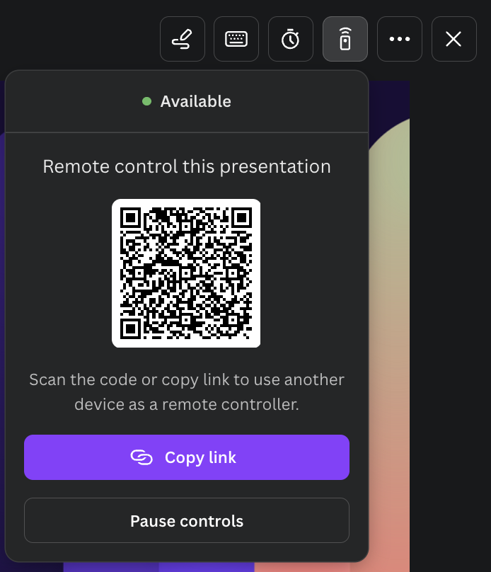 Some of these features I’ve seen before. Some of these features I wished I had (or knew about). This one legitimately blew my mind. If you open up presenter view while presenting a deck (you should absolutely be using Canva > Powerpoint or Sheets btw) there’s a little remote button that opens up a QR code. You scan that thing and it’ll let you control the deck from your phone. No more little remotes going missing.