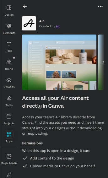 Like most SaaS tools, Slack has a huge ecosystem of integrations. Connect it to a DAM like Air to maintain a single source for all of your assets. Connect to HubSpot to create charts and reports using live CRM data, connect with Meta to check your designs before launching an ad. There’s tons of options.