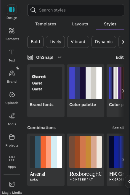 The designers are gonna hate me for this one… Sometimes you don’t have a template and need one. You can build one from scratch or you can see what’s happening in the template library (told you they’d hate me). If you find something that works, you can use either your brand styles or pre-designed combinations to immediately update the template to match your styles. It’s like a cool shuffle button but within your brand. It’s pretty fun.